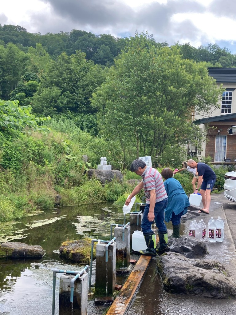 Three treats awaited us in the neighbourhood. A spring of cool, sweet water from Mt Yotei spouts right next to highway 66. We joined the locals and filled up. Next to it is Wakimizu no Sato, a tofu maker that uses traditional methods and Yotei spring water. With these it makes the best tofu I’ve ever eaten. And just down the road, at Makkari Base, we drank the best coffee we’ve had in Japan (an experience of all of 2 weeks).