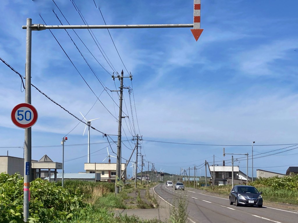 After our taste of high living, we were back to the familiar grit, sweat and sunscreen of pedalling. We rode up the coast, through Obira and Tomamae, Harboro and Enbetsu to Teshio, the wind behind us pushing us along and enjoying a blessed 5 degree drop in temperature to 27 °C. The humidity stayed doggedly in the 90s.