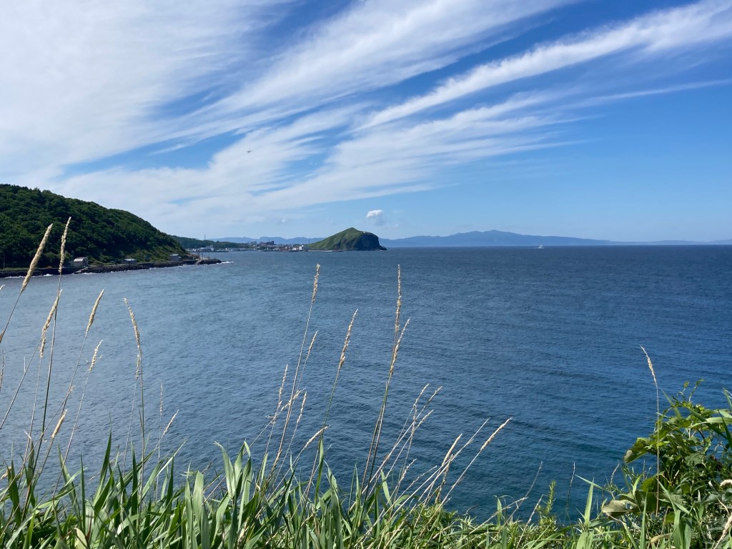 Having come so far, we didn’t want to call it quits, and on the third day finished our circumnavigation of Rishiri. For this 15 km section, we took the bike path that goes around much of the island. It bypasses the villages, but takes riders through grasslands and forest. The main danger here is gulls relieving themselves. The fine weather had gone, and cloud hung almost to sea level, so we could no longer see Rishiri.