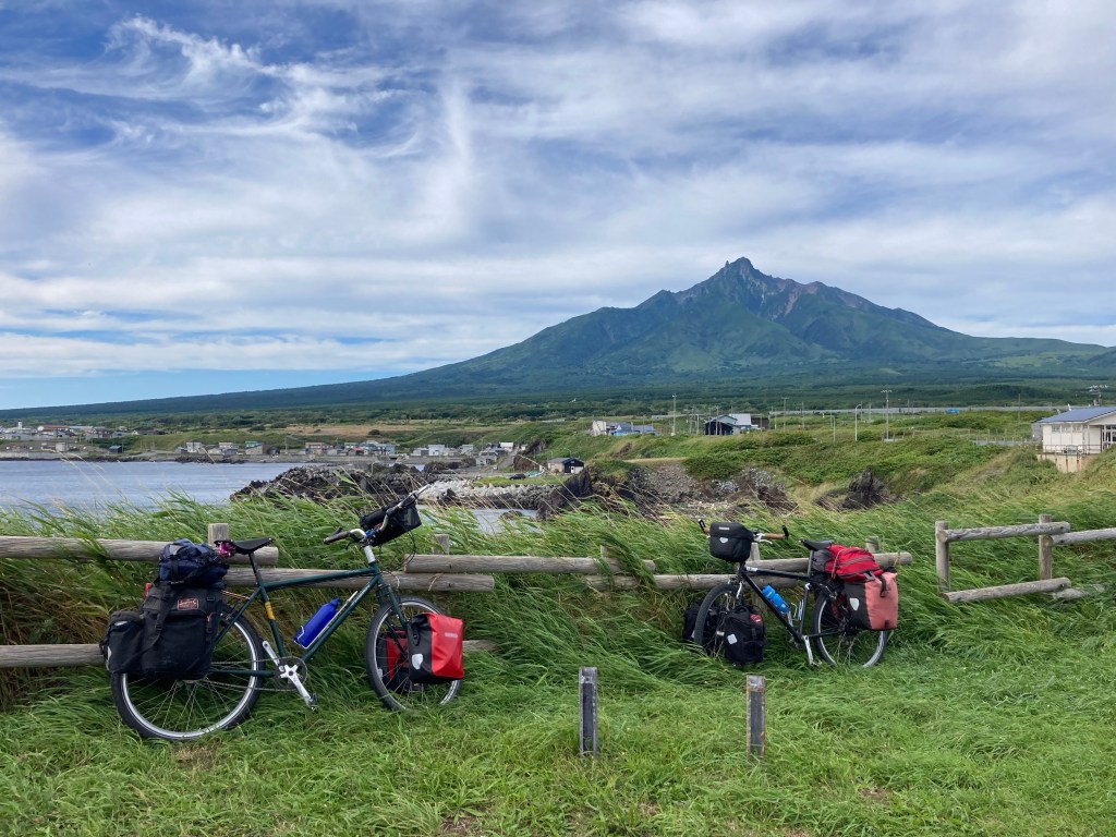 Rishiri feels like another world. It’s a beautiful one. We stopped several times to take in views of the dramatic shape of the volcano, which was using its mythical power to curve the wind direction around itself. We passed what must surely be one of the tiniest Shinto shrines in Japan, Itsukushima Benten Shrine of the North, about a metre high and bright orange, sitting on Dragon King’s Rock. We made it to our camp above the town of Kutsugata and Claire collapsed into the tent as soon as we had it up. A night on damp ground wasn’t a great idea (!), and the next day ended up being a forced rest day. Dave organised a cabin for us to move into.